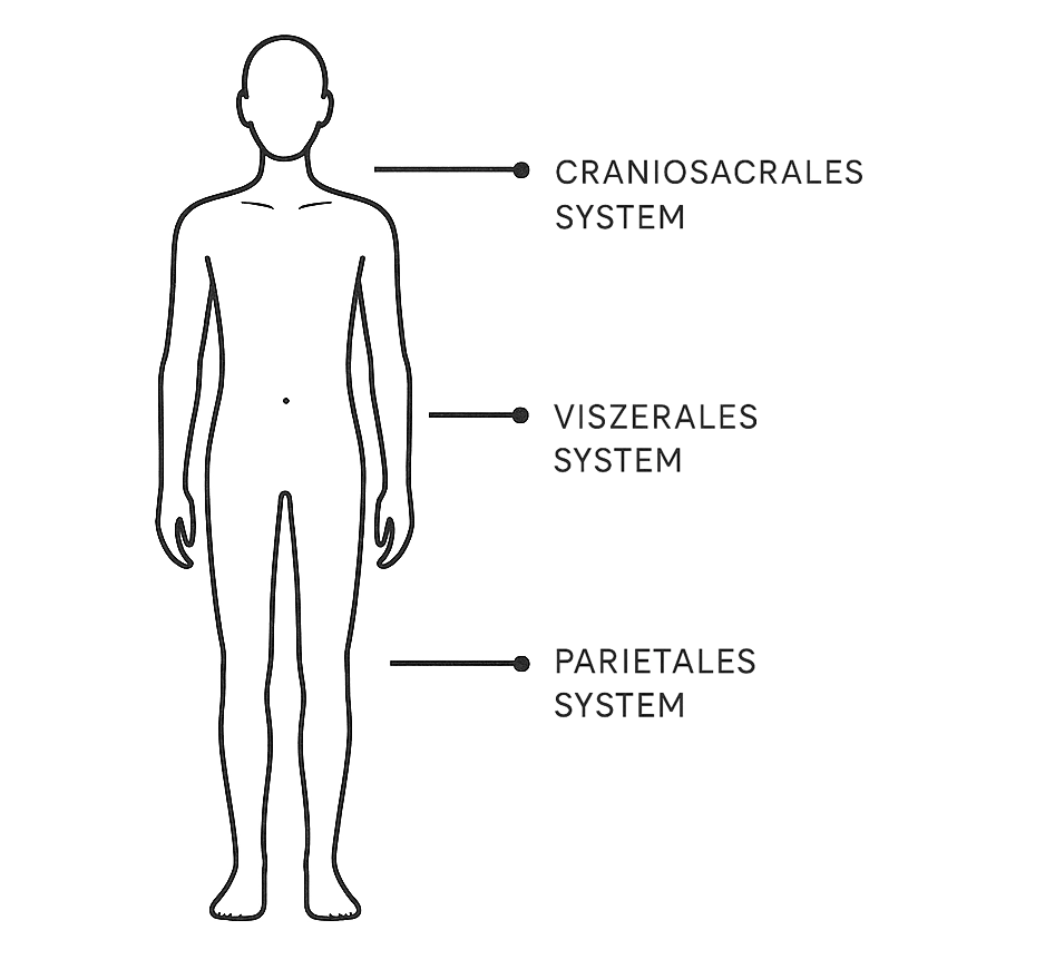 Blockierungen und Funktionsstörungen in den Geweben zu erfassen und diese zu beseitigen und die Beweglichkeit wieder herzustellen. Die drei großen Systeme (das parietale, viszerale und craniale System) stehen dabei im Mittelpunkt.